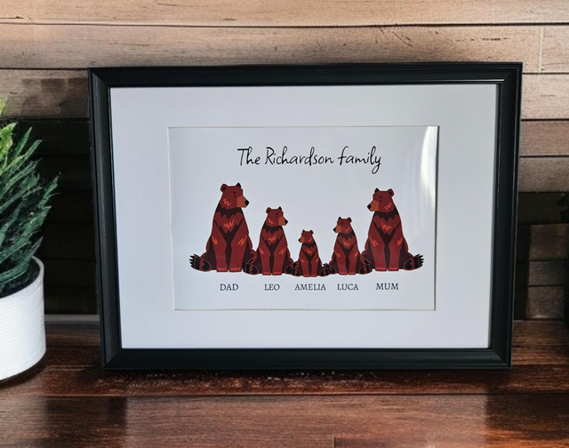 A sweet and cosy illustration featuring a little family of bears sitting together- personalised with your family’s names underneath. A beautiful keepsake for your home or a thoughtful gift for loved ones ✨