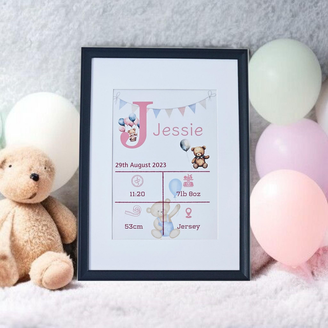 A cosy and charming birth print, perfect for snuggly nurseries and keepsake memories.