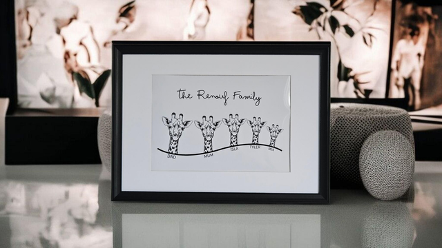 Celebrate your family with this adorable giraffe print- each giraffe represents a family member, symbolising love, growth, and togetherness. 💛