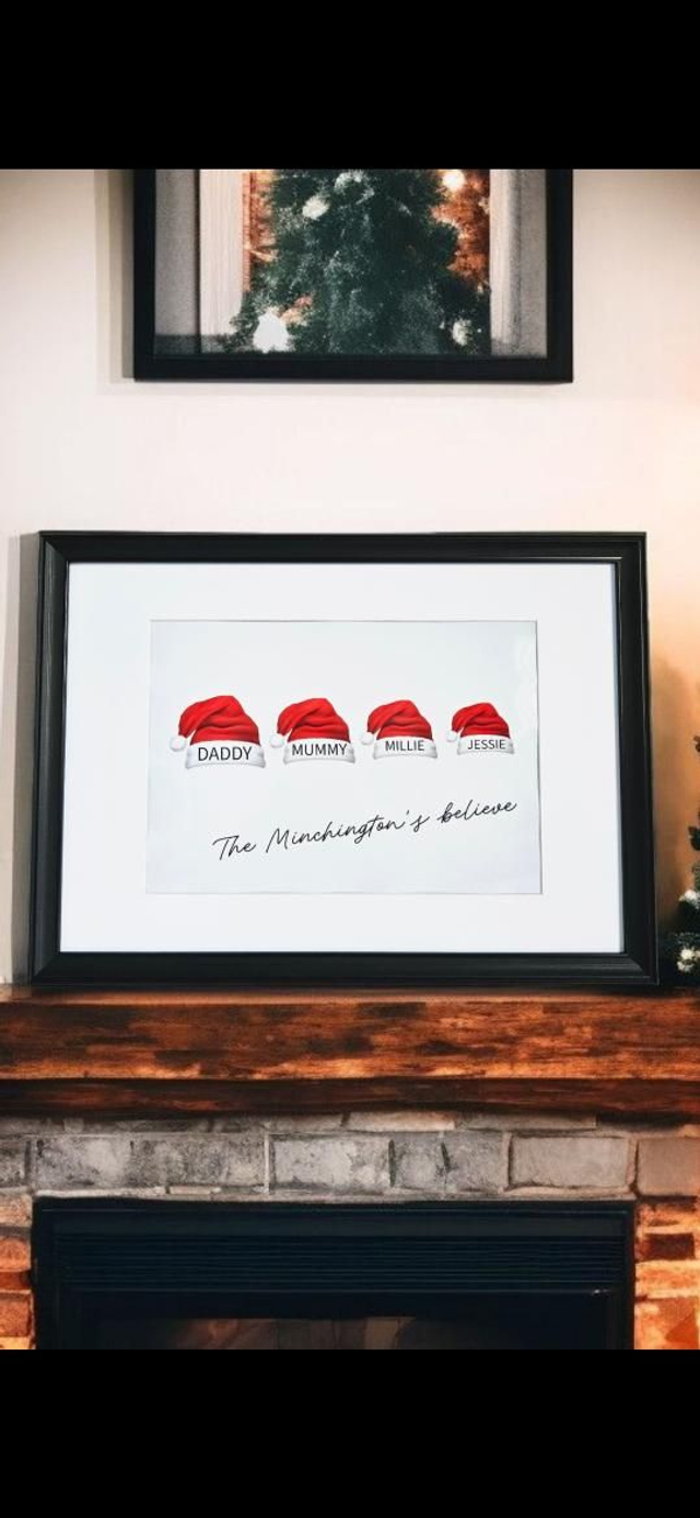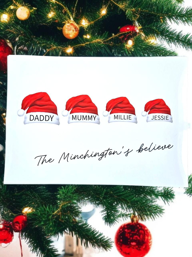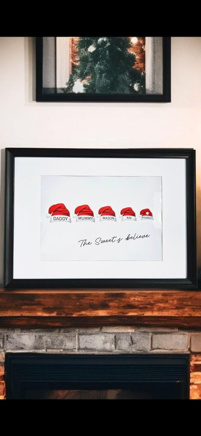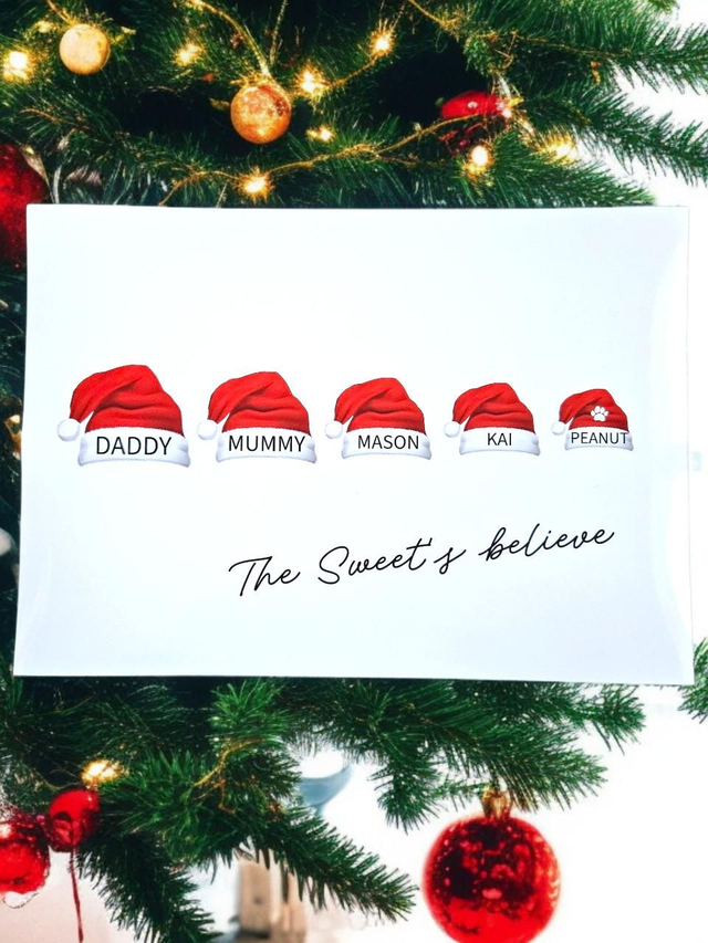 Fun festive print with personalised Santa hats for family members and pets🎅
