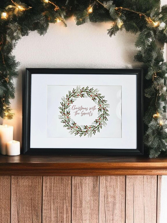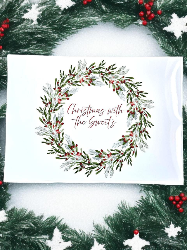 Landscape wreath with berries and pinecones, personalised with your family name.